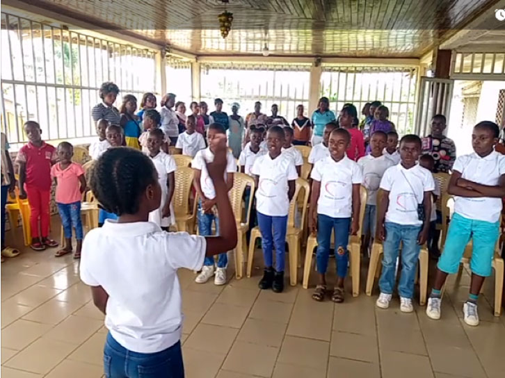 Sopi Mahouve Lydie, Koordinatorin des Projekts Lendemain Meilleur, dankte und begrüßte die Eltern und Gäste. In ihren Ausführungen gibt sie einen kurzen Überblick über die Geschichte des Projekts, das von 06 Kindern im Jahr 2017 auf heute 21 Kinder startet.