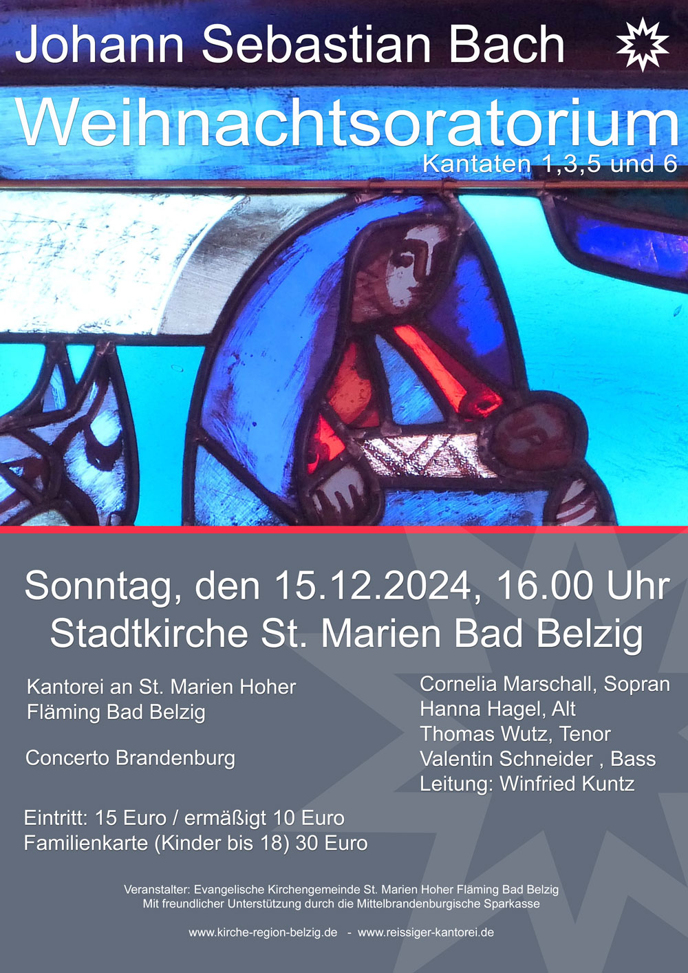 Die Reißiger-Kantorei an St. Marien Hoher Fläming Bad Belzig plant, zwei verschiedene „Te Deum“ von Marc-Antoine Charpentier und Antonín Dvořák mit weiteren interessierten Sängerinnen und Sängern als gemeinsames Projekt zu proben und am 13. Dezember 2026 in der Bricciuskirche Bad Belzig zur Aufführung zu bringen.
